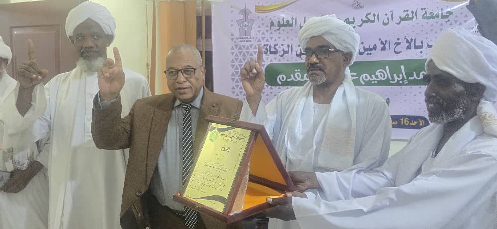 نظرا للشراكات القديمة و الممتدة و لجهود الامين العام لديوان الزكاة أحمد إبراهيم عبدالله الكبيرة في دعم مسيرة التعليم بجامعة القرآن الكريم و تأصيل العلوم الإسلامية بولاية الجزيرة في فترة الحرب و بعدها و نظراً للتعاون الكبير بين ديوان الزكاة والجامعة في تسيير الكثير من القوافل الدعوية وتنفيذ البرامج التي تعمل علي تعريف المجتمع بأموره دينه كًرمت الجامعة الامين العام لديوان الزكاة و أمين الزكاة ولاية الجزيرة عند زيارتهم للجامعة يرافقه مديري الادارات العامة بالديوان.