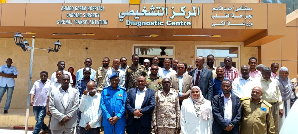 حيا العاملين وجهدهم الذي ظل حاضرا منذ اللحظات الأولى للحرب في تقديم الخدمة مشيراً إلى إسناد مجلس السيادة والصحه الاتحادية لهذا القطاع المهم في تقديم الخدمات الصحيه مشيرا للجهد الكبير الذي بذل في تأهل المرافق الصحية بالولايه التي استهدفتها المليشيا المتمرد وأكد استعداد الوزارة في المواصلة عمليات التأهيل حتى تعود كل المستشفيات والمراكز الصحية ووعد بحل كل المشاكل وتوفير المطلوبات لهذه المرافق..