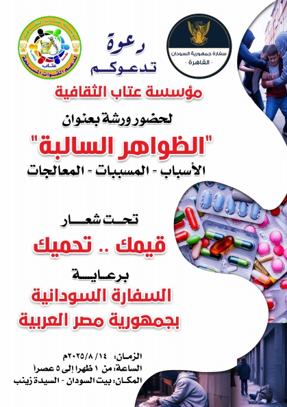 تحت شعار قيمك تحميك برعاية السفارة السودانية بجمهورية مصر العربية يوم الخميس الموافق14اغسطس الجاري من الساعة الواحدة ظهرا إلى الخامسة عصرا
