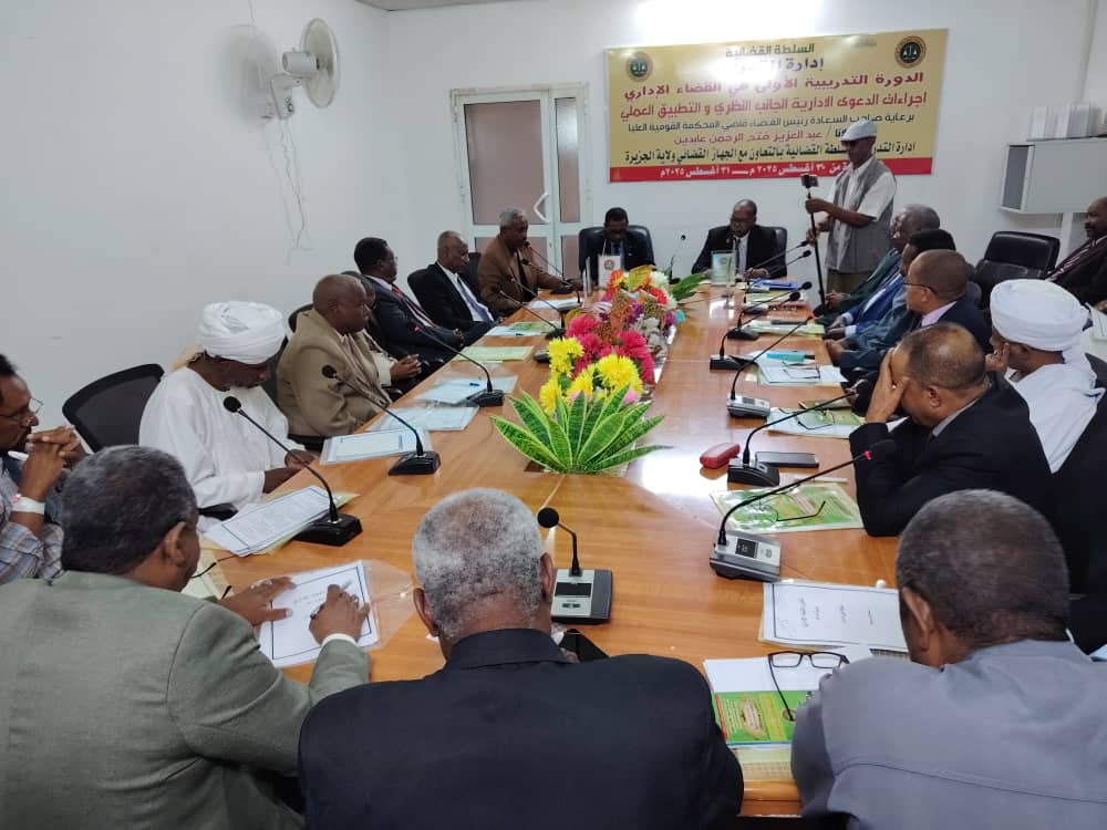 نظمت إدارة التدريب بالسلطة القضائية بالتعاون مع الجهاز القضائي ولاية الجزيرة صباح اليوم بقاعة التدريب برئاسة الجهاز القضائي ولاية الجزيرة وبرعاية كريمه من سعادة مولانا عبد العزيز فتح الرحمن عابدين قاضي المحكمة القوميه العليا رئيس القضاء